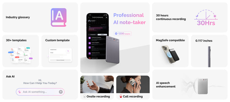 Capture every detail effortlessly with PLAUD NOTE integrating phone call/on-site recording modes.