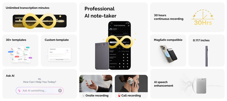 Stay completely present in every conversation while PLAUD NOTE delivers professionally formatted interview notes and key takeaways.