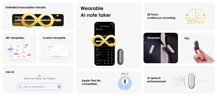 Wearable AI note-taking solution with unlimited transcription for high-volume workflows.